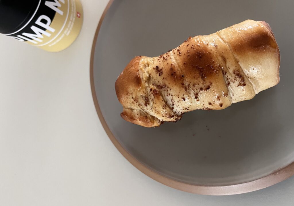 - Anschliessend den Baumstriezel mit Pimp My Brei bestreuen und mit Apfelmus servieren.